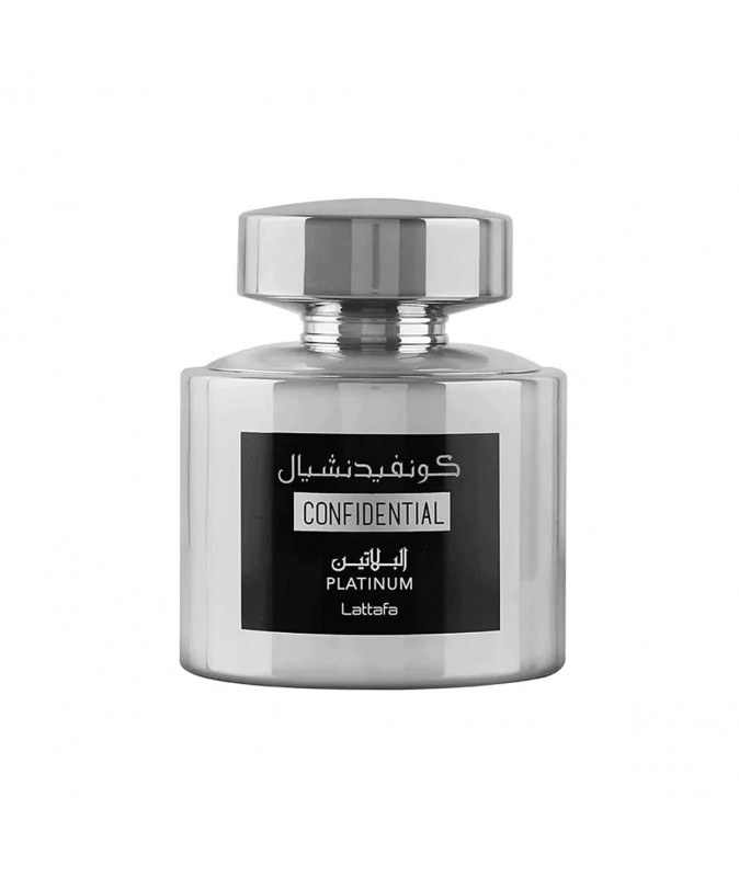 Confidential Platinum Lattafa Perfumes — это аромат для мужчин, он принадлежит к группе древесные фужерные. Confidential Platinum выпущен в 2022 году. Верхние ноты: Цитрусы, Бергамот, Кипарис и Черный перец; средние ноты: Морские ноты, Древесные ноты и Олибанум; базовые ноты: Серая амбра, Мускус, Лабданум и Мох.