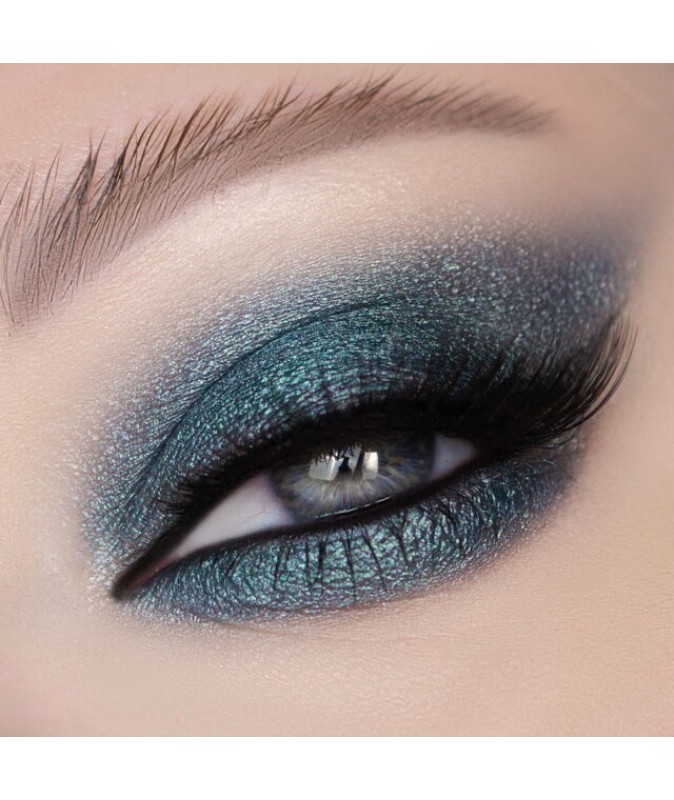 С 143 – перламутровый зеленовато-синий цвет морской волны. Оттенок хорошо пигментирован и легко переносится на веко, ярче раскрывается на темной подложке.