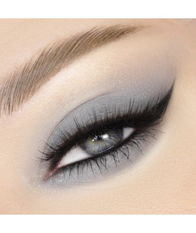 M 22 – светло-серый матовый оттенок. Оттушевочный цвет, позволяет смягчить границу от черного или зачерненного оттенка. Помогает выстроить более плавный переход в темных smoky eyes.