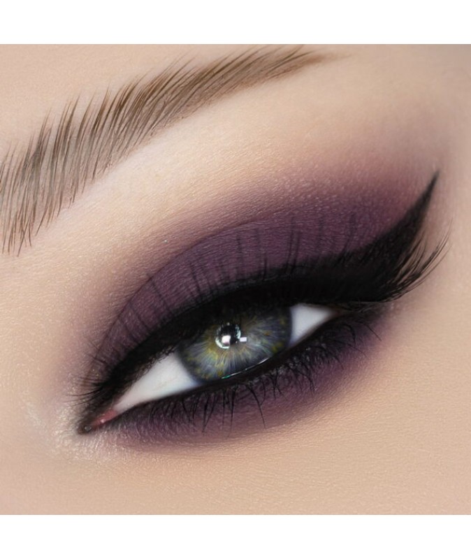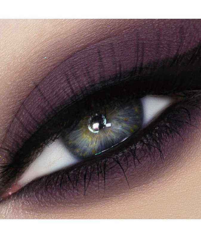 Матовый, сильно пигментированный, яркий оттенок темно-фиолетового цвета. Такой оттенок лучше набивать на веко, наслаивать. Тогда вы добьетесь такого же оттенка, как в рефиле. Можно наносить влажной кистью и делать насыщенные стрелки.