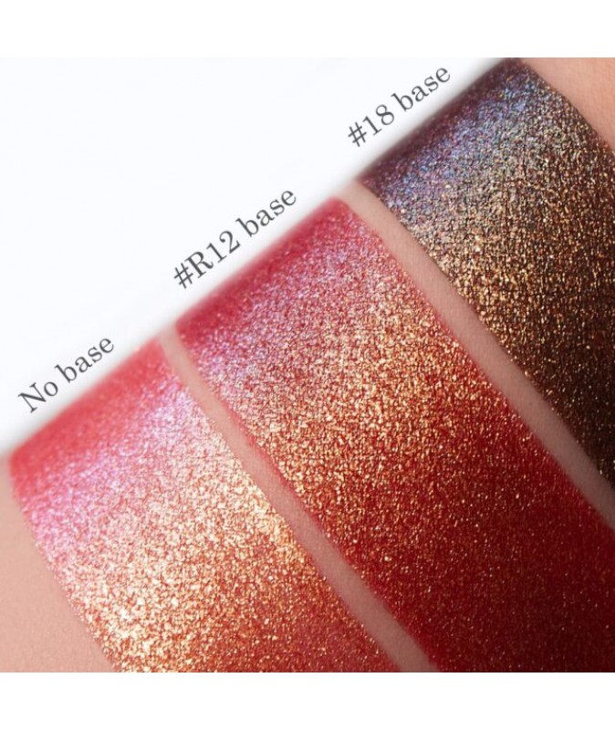 Х 07 – персиково-золотисто-салатовый мультихром мелкого помола. Высокая плотность цвета. Можно использовать соло (более прозрачный эффект), но для большей стойкости подойдет любая база под тени.