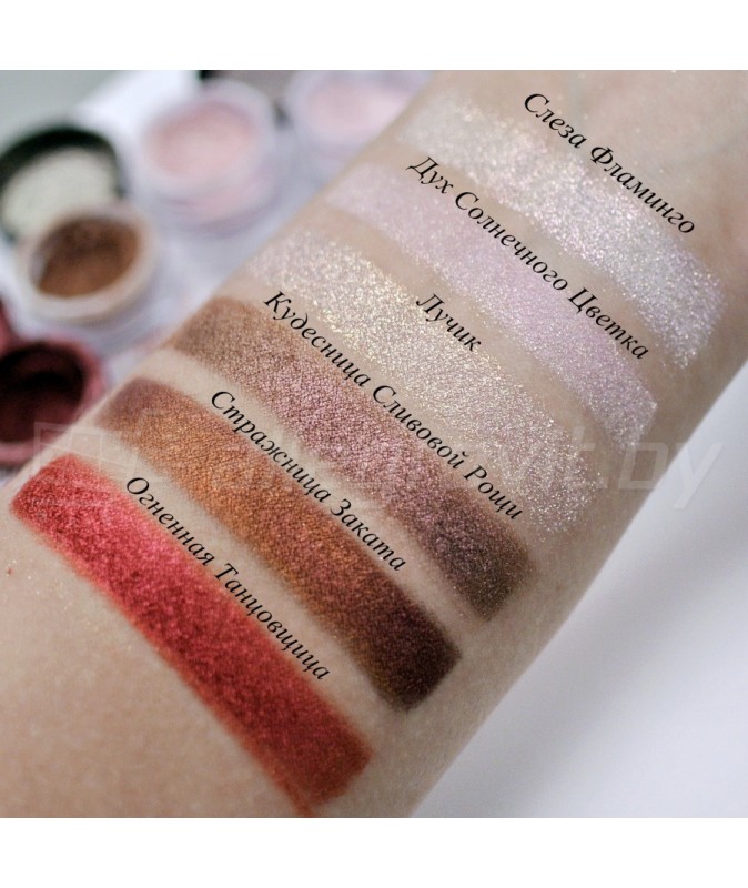Цвет: глубокий, темно-бордовый металлик, растушевывающийся в медный оттенок. Для получения красного оттенка - лучше всего использовать плотное наслаивание на очень липкую базу, для получения медного оттенка - растушевку.