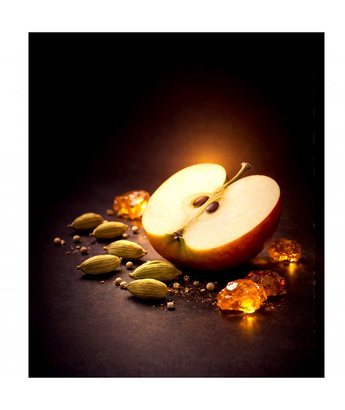 С первых нот Amber Wood раскрывается ярко и красиво: яблоко, белый перец, лаванда и кардамон создают свежий, пряный старт с лёгкой фруктовой сочностью. Затем композиция становится более глубокой и благородной. Кедр и ирисовый корень добавляют аромату мягкость, древесную гладкость и лёгкий пудровый оттенок. В базе остаются амбра, древесные ноты и пачули — именно они формируют тёплое, густое и запоминающееся звучание.